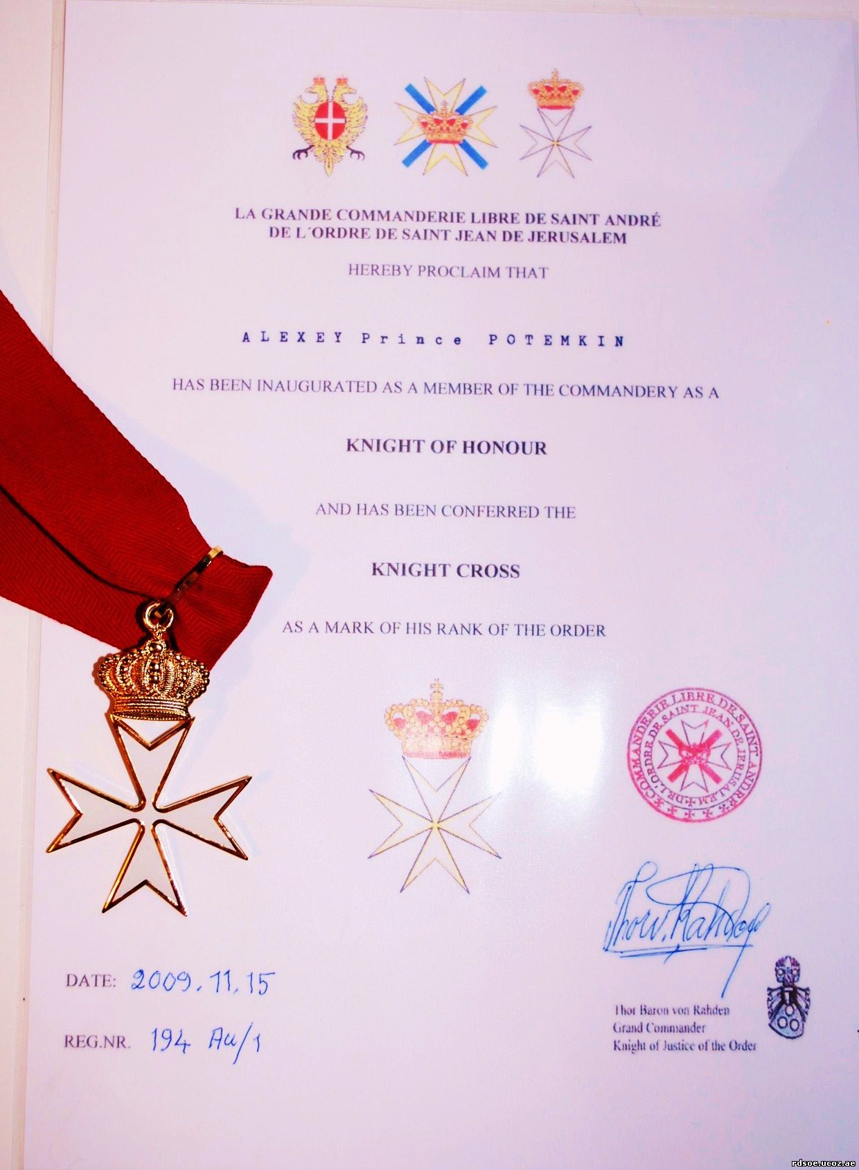 Мартосов, с 2009 года - Рыцарь Чести Командорства Св. Андрея Ордена Св. Иоанна Иерусалимского(Королевство Швеция), Уполномоченный Представитель Петро-Павловского Имперского Общества и Всероссийского Монархического Центра в Европе.Избран председателем РДСОЕ 4 ноября 2009 года.